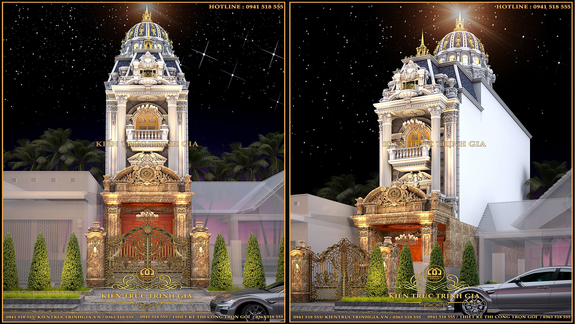 Mẫu thiết kế nhà phố 3 tầng nổi, 1 tầng hầm phong cách cổ điển